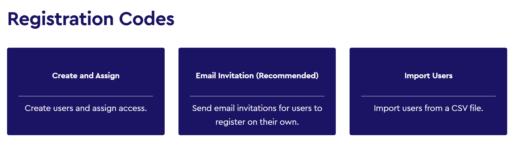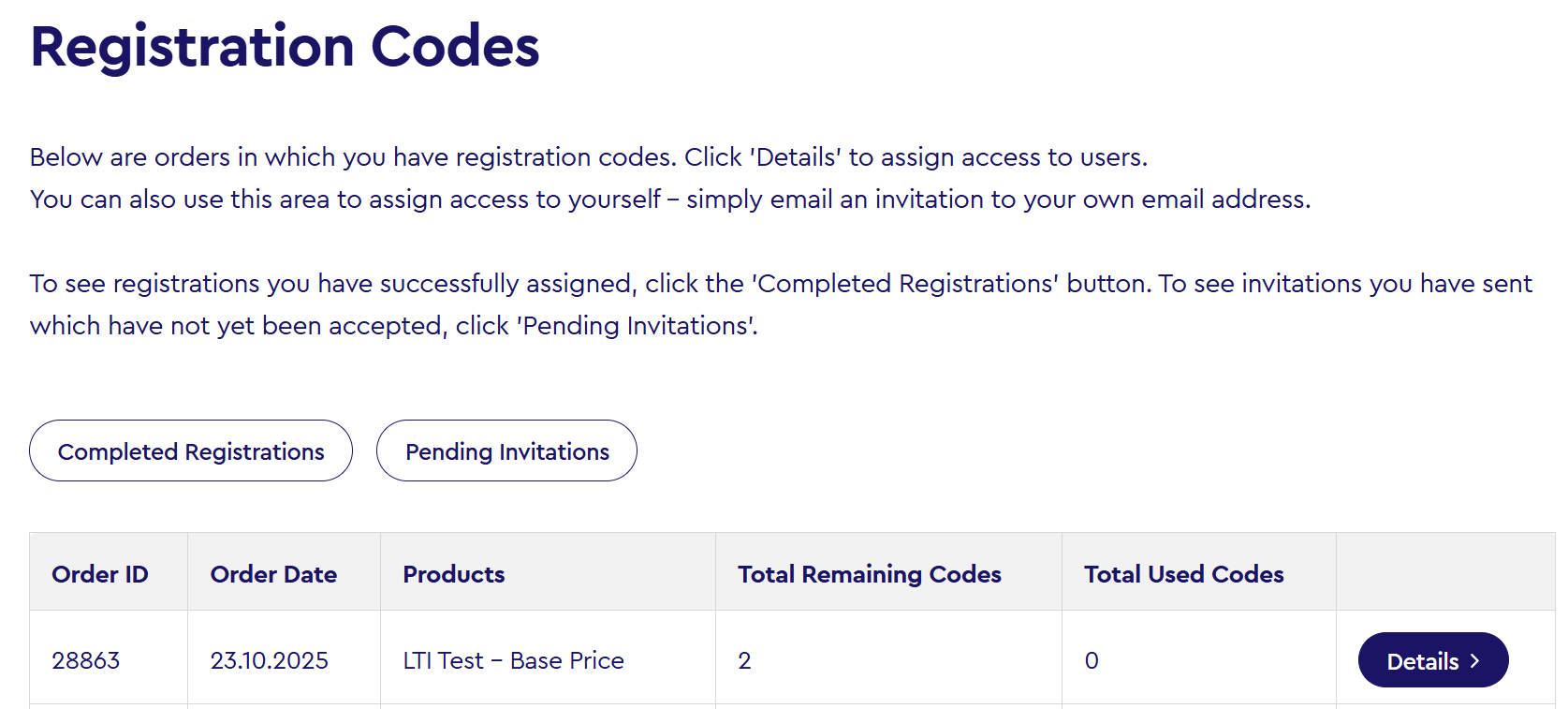 From this page, you can assign access to products, view registrations that you have successfully assigned to others, or view invitations that have not yet been accepted.
